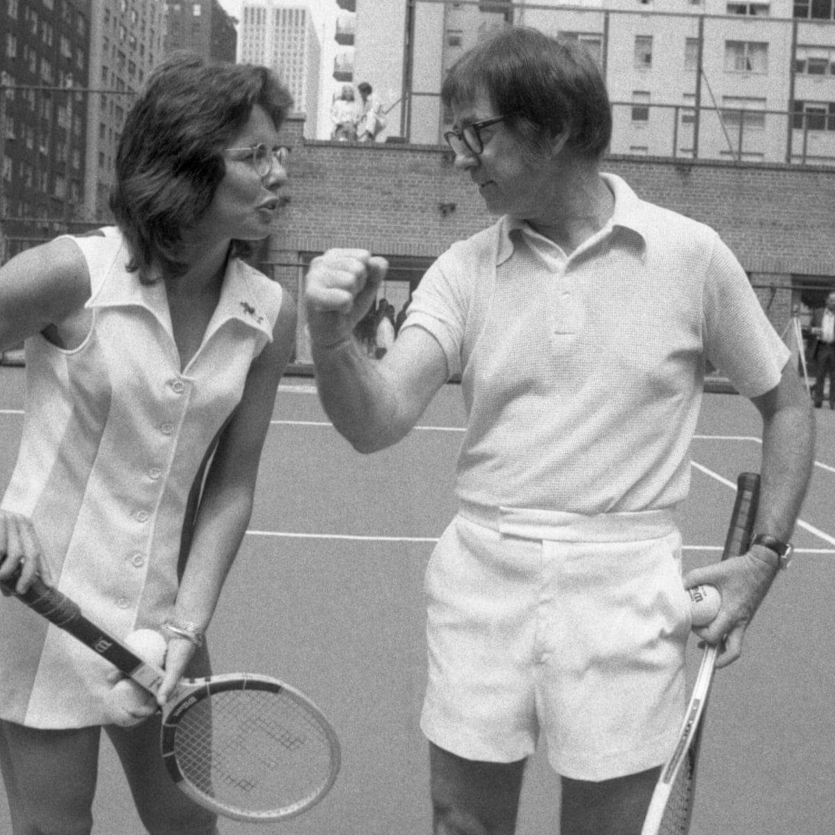 Battle of the Sexes A courageous advocate for gender equality for women from a young age Billie Jean King accepted a challenge to play a match against former number 1-ranked tennis player Bobby Riggs. It was 1973 and Riggs a top mens player in the 1930s and 1940s was now a 55-year-old self-described hustler and. Billie Jean King reine du tennis mondial défie lors dune exhibition lancien numéro 1 masculin Bobby Riggs alors âgé de 55 ans.